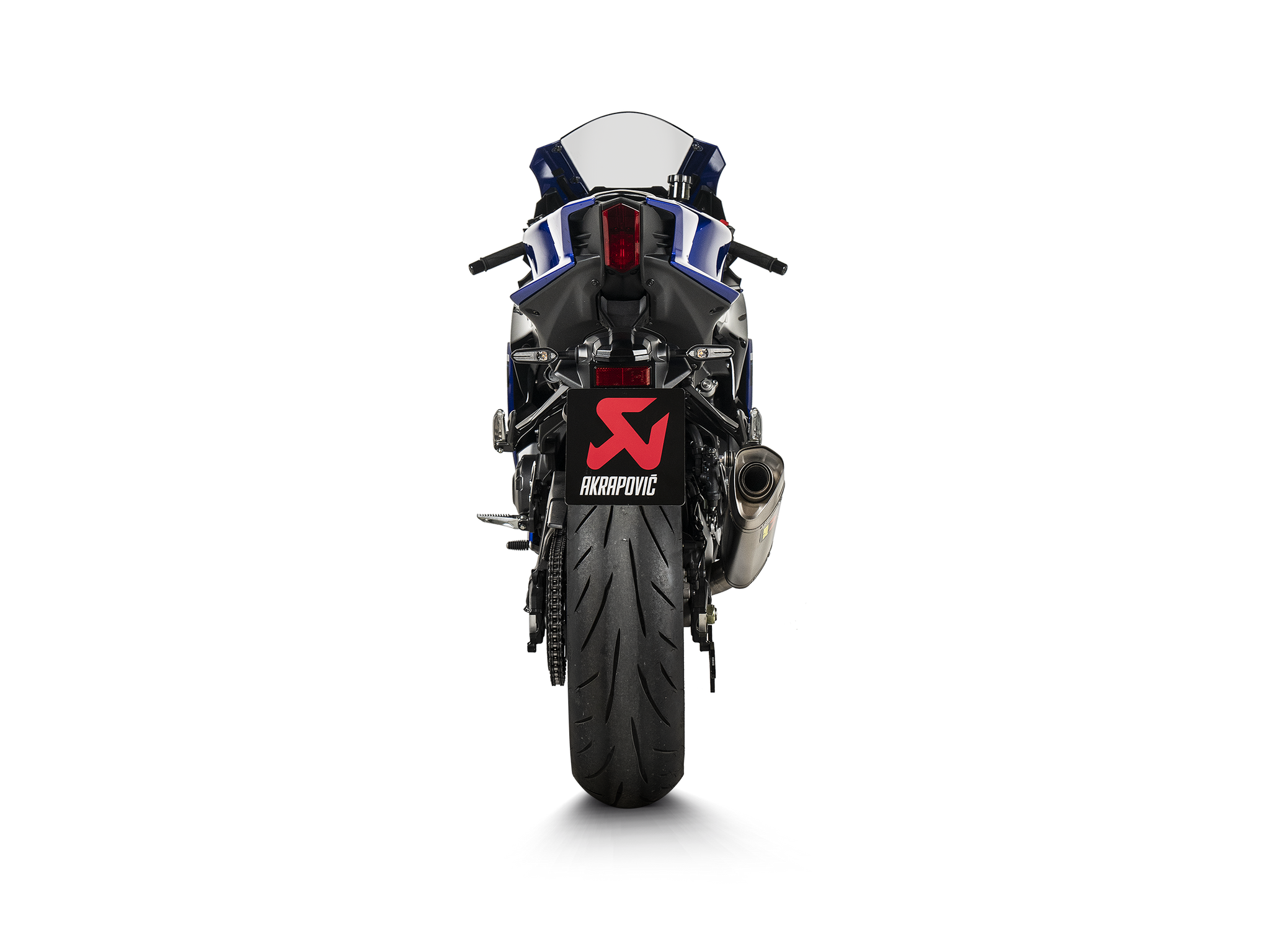 A high-grade titanium muffler outer sleeve and end cap is combined with a stainless-steel link pipe and headers. It is a complete exhaust system for the Yamaha R9 that follows the look of the Akrapovič exhaust systems for the Yamaha R6, R7, and R1, with a design similar to the Akrapovič exhausts used in the World Supersport Championship.